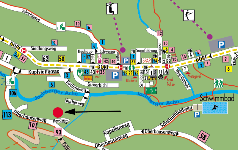 Zur Ortsmitte sind es etwa 15 Min. Gehweg oder 3 Min. mit dem Auto. Im